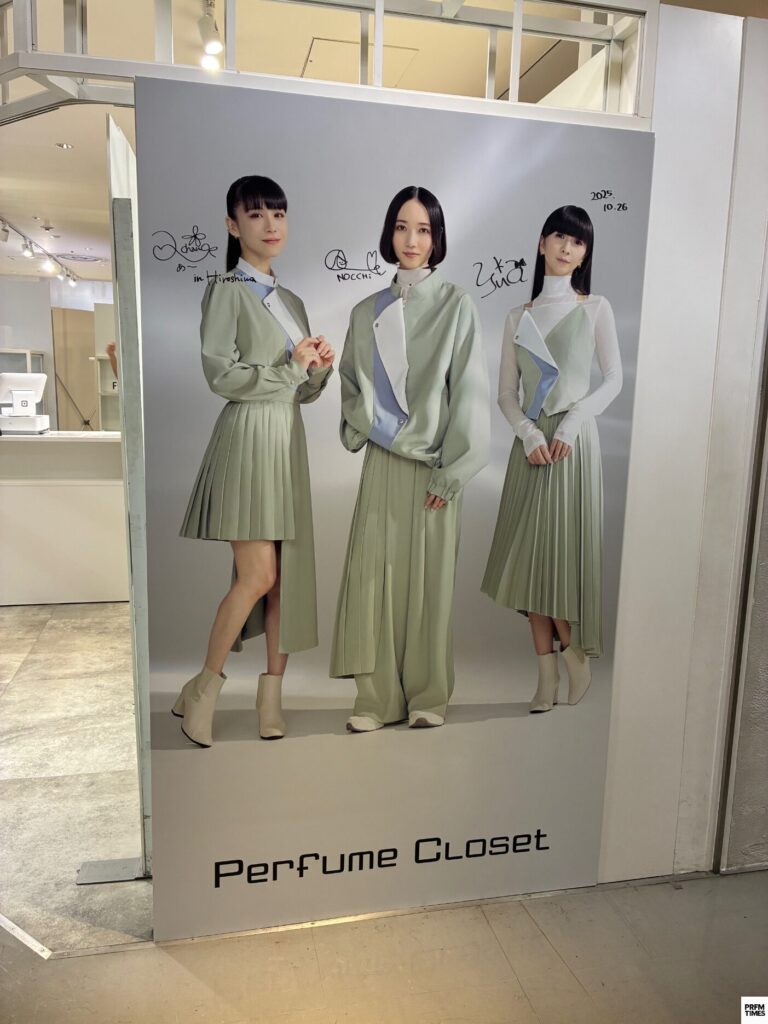このパネル、昨年10月に広島で行われたPerfume ClosetのPOPUP SHOPにPerfumeの3人がサプライズ訪問した時にサインをしたパネルですね。
