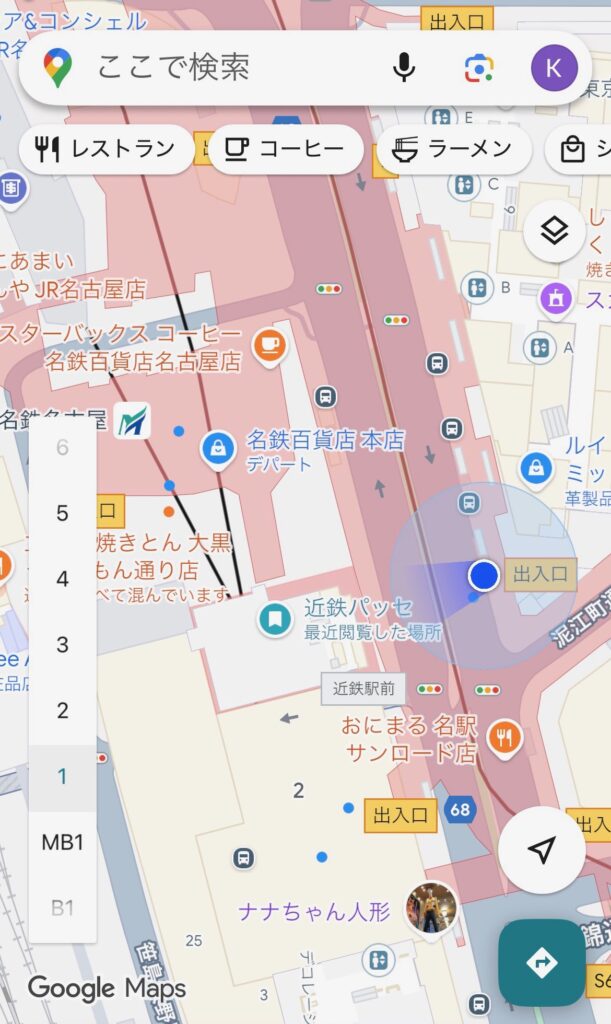 高島屋がある桜通口側から出て右側へ、名鉄百貨店本店の隣のビルです。