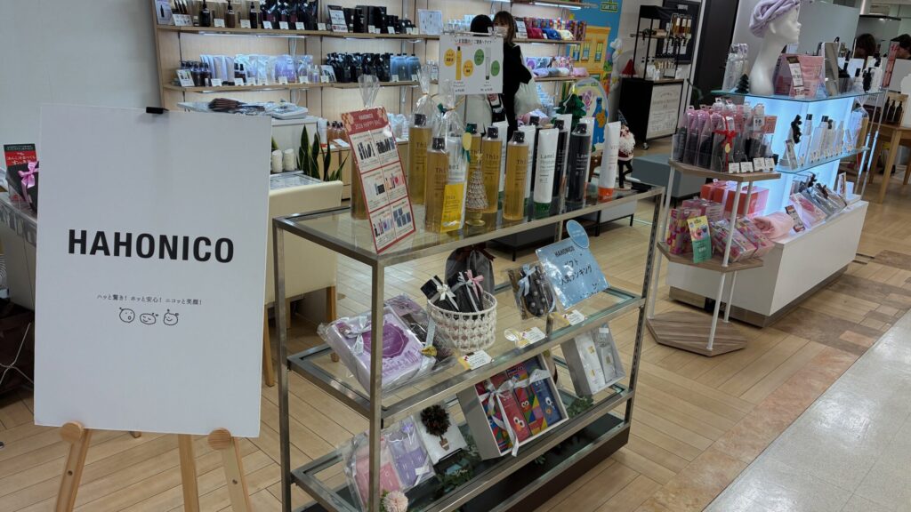 6階でエレベーターを降りてそごう美術館へ向かう途中、エレベーター乗り場から少し歩いて左側に、かしゆかが愛用しているシャンプー&トリートメント「ハホニコ」さんの取扱店を発見!